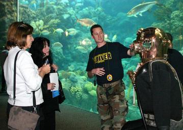 Keywords: US Navy 110124-N-4397B-010 Chief Navy Diver Kevin Moore talks about the MK-5 diving suit with visitors to the Coral Reef exhibit at the Florida Aqu.jpg en TAMPA BAY Fla Jan 24 2011 Chief Navy Diver Kevin Moore assigned to the Trident Refit Facility at Naval Submarine Base Kings Bay talks about the MK-5 diving suit with visitors to the Coral Reef exhibit at the Florida Aquarium during Tampa Bay Navy Week Navy Weeks are designed to show Americans the investment they have made in their Navy and increase awareness in cities that do not have a significant Navy presence U S Navy photo by Stacey Byington/Released 2011-01-24 110124-N-4397B-010 Navy http //www navy mil/view_image asp id 96742 U S Navy photo by Stacey Byington PD-USGov-Military-Navy Images from US Navy location Tampa Bay Fla Florida Aquarium Tampa Bay Navy Week |