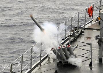Keywords: US Navy 110131-N-1512O-001 An MK-214 seduction chaff canister is fired during a test exercise aboard USS Mount Whitney (LCC-JCC 20).jpg en MEDITERRANEAN SEA Jan 31 2011 An MK-214 seduction chaff canister is fired during a test exercise aboard the amphibious command ship USS Mount Whitney LCC/JCC 20 Mount Whitney is the U S 6th Fleet flagship homeported in Gaeta Italy and operates with a hybrid crew of U S Sailors and Military Sealift Command civil service mariners U S Navy photo by Mass Communication Specialist 2nd Class Stephen Oleksiak/Released 2011-01-31 110131-N-1512O-001 Navy http //www navy mil/view_image asp id 96961 U S Navy photo by Mass Communication Specialist 2nd Class Stephen Oleksiak PD-USGov-Military-Navy Aboard USS Mount Whitney LCC-20 Mark 36 Super Rapid Blooming Offboard Chaff |
