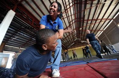 Keywords: US Navy 110309-N-EC642-149 Maria Martinez, a Honduran port security guard, takes down Senior Chief Master-at-Arms Charles E. Mobley, assigned to a.jpg en SAN LORENZO Honduras March 9 2011 Maria Martinez a Honduran port security guard takes down Senior Chief Master-at-Arms Charles E Mobley assigned to a security training team aboard High Speed Vessel Swift HSV 2 while demonstrating proper takedown techniques during a weeklong Southern Partnership Station 2011 subject matter expert exchange Southern Partnership Station is an annual deployment of U S ships to the U S Southern Command area of responsibility in the Caribbean and Latin America U S Navy photo by Mass Communication Specialist 2nd Class Ricardo J Reyes/Released 2011-03-09 110309-N-EC642-149 Navy http //www navy mil/view_image asp id 98246 U S Navy photo by Mass Communication Specialist 2nd Class Ricardo J Reyes PD-USGov-Military-Navy Images from US Navy location San Lorenzo Honduras 2011 in Honduras |