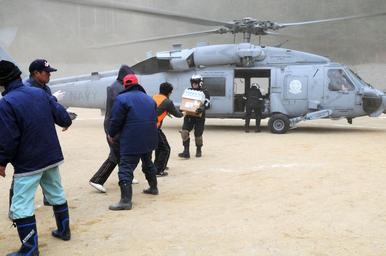 | Keywords: US Navy 110315-N-IC111-121 Naval Air Crewman 2nd Class Zack DelCorte hands bottled water to a Japanese citizen.jpg en WAKUYA Japan March 15 2011 Naval Air Crewman 2nd Class Zack DelCorte assigned to the Black Knights of Helicopter Anti-Submarine Squadron HS 4 embarked aboard the aircraft carrier USS Ronald Reagan CVN 76 hands bottled water to a Japanese citizen Ships and aircraft from the Ronald Reagan Carrier Strike Group are conducting search and rescue operations and re-supply missions as directed in support of Operation Tomodachi throughout northern Japan U S Navy photo by Mass Communication Specialist 3rd Class Kevin B Gray/Released 2011-03-15 110315-N-IC111-121 Navy http //www navy mil/view_image asp id 98524 U S Navy photo by Mass Communication Specialist 3rd Class Kevin B Gray Personality rights PD-USGov-Military-Navy USS Ronald Reagan CVN-76 humanitarian aid Operation Tomodachi in March 2011 HH-60H Rescue Hawk Bottled water Helicopter Anti-Submarine Squadron 4 United States Navy |