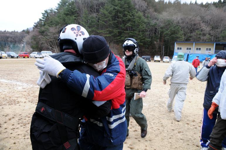 | Keywords: US Navy 110315-N-IC111-461 Chief Naval Air Crewman Steven Sinclair is embraced by a Japanese citizen after delivering humanitarian supplies.jpg en WAKUYA Japan March 15 2011 Chief Naval Air Crewman Steven Sinclair assigned to the Black Knights of Helicopter Anti-Submarine Squadron HS 4 embarked aboard the aircraft carrier USS Ronald Reagan CVN 76 is embraced by a Japanese citizen after delivering humanitarian supplies Ships and aircraft from the Ronald Reagan Carrier Strike Group are conducting search and rescue operations and re-supply missions as directed in support of Operation Tomodachi throughout northern Japan U S Navy photo by Mass Communication Specialist 3rd Class Kevin B Gray/Released 2011-03-15 110315-N-IC111-461 Navy http //www navy mil/view_image asp id 98486 U S Navy photo by Mass Communication Specialist 3rd Class Kevin B Gray Personality rights PD-USGov-Military-Navy USS Ronald Reagan CVN-76 humanitarian aid Operation Tomodachi in March 2011 Hugs involving the military Helicopter Anti-Submarine Squadron 4 United States Navy |