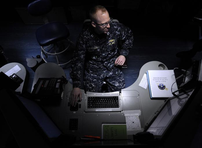 | Keywords: US Navy 110401-N-8040H-138 Lt. Eric Eckstrand stands watch as assistant staff tactical action officer in the sea combat control room aboard USS Car.jpg en ARABIAN GULF April 1 2011 Lt Eric Eckstrand submarine operations officer assigned to Destroyer Squadron DESRON 1 stands watch as assistant staff tactical action officer in the sea combat control room aboard the Nimitz-class aircraft carrier USS Carl Vinson CVN 70 Carl Vinson and Carrier Air Wing CVW 17 are conducting maritime security operations and close-air support missions for Operation New Dawn in the U S 5th Fleet area of responsibility U S Navy photo by Mass Communication Specialist 3rd Class Christopher K Hwang/Released 2011-04-01 110401-N-8040H-138 Navy http //www navy mil/view_image asp id 99403 U S Navy photo by Mass Communication Specialist 3rd Class Christopher K Hwang PD-USGov-Military-Navy Aboard USS Carl Vinson CVN-70 |