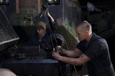 | Keywords: US Navy 110406-N-QP268-162 Lance Cpl. Taylor Fenderson, right, and Lance Cpl. Chris Arbino hook lifting straps to a amphibious assault vehicle (AAV.jpg en ATLANTIC OCEAN April 6 2011 Lance Cpl Taylor Fenderson right from Hesperia Calif and Lance Cpl Chris Arbino from Cincinnati both assigned to the 22nd Marine Expeditionary Unit 22nd MEU embarked aboard the amphibious dock landing ship USS Whidbey Island LSD 41 hook lifting straps to a amphibious assault vehicle AAV Cummins VTA 903 T 525 diesel engine in the ship's well deck Whidbey Island is deployed to the Mediterranean Sea as part of the Bataan Amphibious Ready Group U S Navy photo by Mass Communication Specialist 1st Class Martin Cuaron/Released 2011-04-06 110406-N-QP268-162 Navy http //www navy mil/view_image asp id 99678 U S Navy photo by Mass Communication Specialist 1st Class Martin Cuaron PD-USGov-Military-Navy Aboard USS Whidbey Island LSD-41 Well decks Cummins VTA-903 |