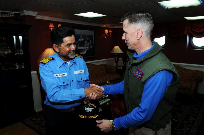 Keywords: US Navy 110408-N-IC111-934 Capt. Thom Burke, commanding officer of the aircraft carrier USS Ronald Reagan (CVN 76), exchanges a gift with Indian na.jpg en PACIFIC OCEAN April 8 2011 Capt Thom Burke commanding officer of the aircraft carrier USS Ronald Reagan CVN 76 exchanges a gift with Indian navy Rear Adm Harish Bisht flag officer of Commanding Eastern Fleet in the captain's in-port cabin aboard Ronald Reagan Ronald Reagan is participating in Exercise Malabar a bi-lateral coordination with the Indian navy and is operating in the western Pacific Ocean U S Navy photo by Mass Communication Specialist 3rd Class Kevin B Gray/Released 2011-04-08 110408-N-IC111-934 Navy http //www navy mil/view_image asp id 99697 U S Navy photo by Mass Communication Specialist 3rd Class Kevin B Gray PD-USGov-Military-Navy Captain's cabin of USS Ronald Reagan CVN-76 Guests aboard USS Ronald Reagan CVN-76 |