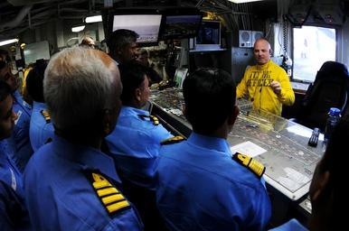 Keywords: US Navy 110408-N-IC111-390 Lt. Brian Zimmerman, flight deck officer aboard the aircraft carrier USS Ronald Reagan (CVN 76).jpg en PACIFIC OCEAN April 8 2011 Lt Brian Zimmerman flight deck officer aboard the aircraft carrier USS Ronald Reagan CVN 76 explains how flight deck control manages aircraft to Indian naval officers of the Eastern Fleet Ronald Reagan is participating in Exercise Malabar a bi-lateral coordination with the Indian navy and is operating in the western Pacific Ocean U S Navy photo by Mass Communication Specialist 3rd Class Kevin B Gray/Released 2011-04-08 110408-N-IC111-390 Navy http //www navy mil/view_image asp id 99694 U S Navy photo by Mass Communication Specialist 3rd Class Kevin B Gray PD-USGov-Military-Navy Flight deck control of USS Ronald Reagan CVN-76 Ouija boards aircraft carrier |