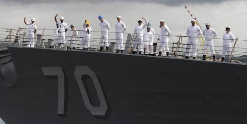 | Keywords: US Navy 110415-N-VM928-037 Sailors man the rails aboard the guided-missile destroyer USS Hopper (DDG 70) as the ship departs Joint Base Pearl Harbo.jpg en PEARL HARBOR April 15 2011 Sailors man the rails aboard the guided-missile destroyer USS Hopper DDG 70 as the ship departs Joint Base Pearl Harbor-Hickam for a scheduled independent deployment Hopper will be conducting operations in the U S 5th and 7th Fleet areas of responsibility U S Navy photo by Mass Communication Specialist 2nd Class Robert Stirrup/Released 2011-04-15 110415-N-VM928-037 Navy http //www navy mil/view_image asp id 99953 U S Navy photo by Mass Communication Specialist 2nd Class Robert Stirrup PD-USGov-Military-Navy Aboard USS Hopper DDG-70 70 number |