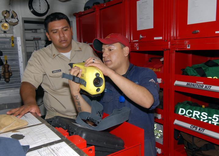 Keywords: US Navy 110419-N-ZI300-116 Hull Technician Fireman Edward Lopez explains firefighting equipment and techniques to Mexican navy Lt. Roman Alfonso Sa.jpg en SALVADOR Brazil April 19 2011 Hull Technician Fireman Edward Lopez explains firefighting equipment and techniques to Mexican navy Lt Roman Alfonso Sarricolea aboard the guided-missile destroyer USS Nitze DDG 94 Sarricolea is aboard Nitze as a part of a service member exchange during the Atlantic phase of UNITAS 52 U S Navy photo by Mass Communication Specialist 1st Class Steve Smith/Released 2011-04-19 110419-N-ZI300-116 Navy http //www navy mil/view_image asp id 100147 U S Navy photo by Mass Communication Specialist 1st Class Steve Smith PD-USGov-Military-Navy Aboard USS Nitze DDG-94 Military of Mexico |