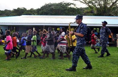Keywords: US Navy 110430-N-KB563-481 The Pacific Partnership 2011 band plays a concert during a community service project at Unity Park.jpg Espiritu Santo ESPIRITU SANTO island Vanuatu April 30 2011 The Pacific Partnership 2011 band plays a concert during a community service project at Unity Park The amphibious transport dock ship USS Cleveland LPD 7 is in Vanuatu for Pacific Partnership 2011 a five-month humanitarian assistance initiative that will make port visits to Tonga Vanuatu Papua New Guinea Timor-Leste and the Federated States of Micronesia U S Navy photo by Mass Communication Specialist 2nd Class Michael Russell/Released 2011-04-30 110430-N-KB563-481 Navy http //www navy mil/view_image asp id 100483 U S Navy photo by Mass Communication Specialist 2nd Class Michael Russell PD-USGov-Military-Navy Children of Vanuatu Espiritu Santo Parks in Vanuatu Unity Park Espiritu Santo Unity Park 2011 in Vanuatu Relations of the United States and Vanuatu children Aboard USS Cleveland LPD-7 Vanuatu Pacific Partnership 2011 Unity Park |