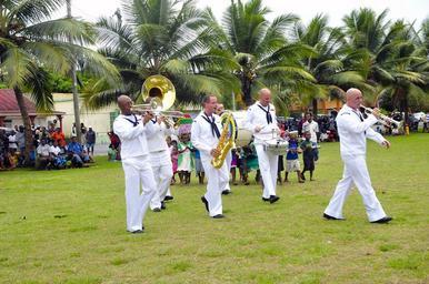 Keywords: US Navy 110501-O-ZZ999-003 he Pacific Partnership 2011 band plays a concert during a community service project at Unity Park.jpg en ESPIRITU SANTO Vanuatu May 1 2011 The Pacific Partnership 2011 band plays a concert during a community service project at Unity Park The amphibious transport dock ship USS Cleveland LPD 7 is in Vanuatu for Pacific Partnership 2011 a five-month humanitarian assistance initiative that will make port visits to Tonga Vanuatu Papua New Guinea Timor-Leste and the Federated States of Micronesia U S Navy photo by Kristopher Radder/Released 2011-05-01 110501-O-ZZ999-003 Navy http //www navy mil/view_image asp id 100486 U S Navy photo by Kristopher Radder PD-USGov-Military-Navy Parks in Vanuatu Unity Park People with trumpets Espiritu Santo Espiritu Santo Unity Park 2011 in Vanuatu Relations of the United States and Vanuatu Aboard USS Cleveland LPD-7 Vanuatu Pacific Partnership 2011 Unity Park |