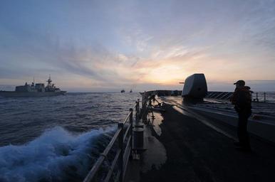 | Keywords: US Navy 110503-N-AE328-196 A Sailor aboard the guided-missile cruiser USS Lake Erie (CG 70) watches as the ship pulls alongside the Canadian navy a.jpg en PACIFIC OCEAN May 3 2011 A Sailor aboard the guided-missile cruiser USS Lake Erie CG 70 watches as the ship pulls alongside the Canadian navy auxiliary oiler replenishment ship HMCS Protecteur AOR 509 for a replenishment at sea during Operation Trident Fury Trident Fury is a bilateral training exercise designed to build a strong working relationship between the maritime and aviation forces of the U S and Canada U S Navy photo by Mass Communication Specialist 2nd Class Nathan Lockwood/Released 2011-05-03 110503-N-AE328-196 Navy http //www navy mil/view_image asp id 100710 U S Navy photo by Mass Communication Specialist 2nd Class Nathan Lockwood PD-USGov-Military-Navy Aboard USS Lake Erie CG-70 |