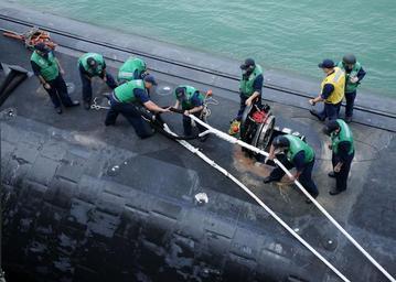 | Keywords: US Navy 110520-N-GE301-049 Sailors assigned to the Los Angeles-class fast attack submarine USS Hampton (SSN 767) handle lines as the submarine deta.jpg en HONG KONG May 20 2011 Sailors assigned to the Los Angeles-class fast attack submarine USS Hampton SSN 767 handle lines as the submarine detaches from the submarine tender USS Frank Cable AS 40 Hampton moored alongside Frank Cable during a port visit to Hong Kong Frank Cable conducts maintenance and support of submarines and surface vessels deployed in the U S 7th Fleet area of responsibility U S Navy photo by Mass Communication Specialist 3rd Class Gabrielle Blake/Released 2011-05-20 110520-N-GE301-049 Navy http //www navy mil/view_image asp id 101281 U S Navy photo by Mass Communication Specialist 3rd Class Gabrielle Blake PD-USGov-Military-Navy USS Hampton SSN-767 Aboard USS Frank Cable AS-40 Images from US Navy location Hong Kong |