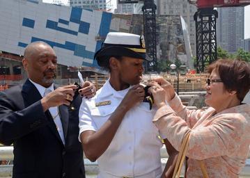 Keywords: US Navy 110526-N-NN926-071 Lt. j.g. Naomi Reynolds, from New York, assigned to the multipurpose amphibious assault ship USS Iwo Jima (LHD 7), has h.jpg en NEW YORK May 25 2011 Lt j g Naomi Reynolds from New York assigned to the multipurpose amphibious assault ship USS Iwo Jima LHD 7 has her new shoulder boards put on her uniform by her parents during a promotion ceremony at Ground Zero in Manhattan during Fleet Week New York 2011 Approximately 3 000 Sailors Marines and Coast Guardsmen are participating in the 24th Fleet Week New York taking place May 25 through June 1 Fleet Week has been New York City's celebration of the sea services since 1984 It is an opportunity for citizens of New York and the surrounding tri-state area to meet Sailors Marines and Coast Guardsmen as well as see first-hand the capabilities of today's maritime services U S Navy photo by Mass Communication Specialist 2nd Class Zane Ecklund/Released 2011-05-25 110526-N-NN926-071 Navy http //www navy mil/view_image asp id 101695 U S Navy photo by Mass Communication Specialist 2nd Class Zane Ecklund PD-USGov-Military-Navy Fleet Week New York 2011 |