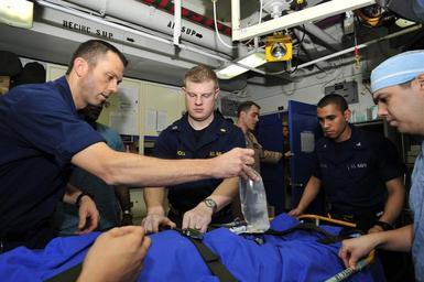 Keywords: US Navy 110606-N-ZZ999-002 Medical personnel aboard the aircraft carrier USS Enterprise (CVN 65) prepare to treat a medically evacuated sailor from.jpg en GULF OF ADEN June 6 2011 Medical personnel aboard the aircraft carrier USS Enterprise CVN 65 prepare to treat a medically evacuated sailor from the German-flagged motor vessel Baltic Island The sailor was initially transported from Baltic Island to the Republic of Korea navy destroyer ROKS Chungmugong Yi Sun-Shin DDH 975 before being moved to the Royal Fleet Auxiliary primary casualty receiving ship RFA Argus A135 After being evaluated aboard Argus he was transferred to Enterprise for advanced treatment U S Navy photo by Mass Communication Specialist 3rd Class Peter D Melkus/Released 2011-06-06 110606-N-ZZ999-002 Navy http //www navy mil/view_image asp id 102261 U S Navy photo by Mass Communication Specialist 3rd Class Peter D Melkus PD-USGov-Military-Navy Aboard USS Enterprise CVN-65 |
