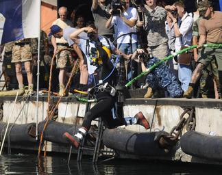 | Keywords: US Navy 110608-N-NW827-069 Utilitiesman 1st Class Jared Weisenberger, assigned to Underwater Construction Team, jumps into the water during a joint.jpg en ODESSA Ukraine June 8 2011 Utilitiesman 1st Class Jared Weisenberger assigned to Underwater Construction Team jumps into the water during a joint dive training exercise with Danish and U S Navy divers at the Ukrainian Western Naval Base during exercise Sea Breeze 2011 Air land and naval forces from Azerbaijan Algeria Belgium Denmark Georgia Germany Macedonia Moldova Sweden Turkey Ukraine the United Kingdom and the United States are participating in Sea Breeze June 6-18 the largest multinational maritime exercise this year in the Black Sea The exercise is co-hosted by the Ukrainian and U S Navies U S Navy photo by Mass Communication Specialist 3rd Class Caitlin Conroy/Released 2011-06-08 110608-N-NW827-069 Navy http //www navy mil/view_image asp id 102325 U S Navy photo by Mass Communication Specialist 3rd Class Caitlin Conroy PD-USGov-Military-Navy Images from US Navy location ODESSA Ukraine Sea Breeze 2011 |