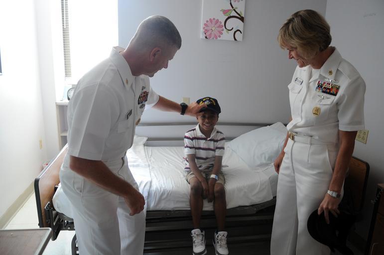 Keywords: US Navy 110614-N-AD372-035 Master Chief Petty Officer of the Navy (MCPON) Rick D. West makes a child an honorary Sailor with a command ball cap fro.jpg en CHATTANOOGA Tenn June 14 2011 Master Chief Petty Officer of the Navy MCPON Rick D West makes a child an honorary Sailor with a command ball cap from U S 7th Fleet command ship USS Blue Ridge LCC 19 during a Caps for Kids event at the T C Thompson Children's Hospital as part of Chattanooga Navy Week Navy Weeks are intended to show Americans the investment they have made in their Navy and increase awareness in cities that do not have a significant Navy presence U S Navy photo by Mass Communication Specialist 1st Class Abraham Essenmacher/Released 2011-06-14 110614-N-AD372-035 Navy http //www navy mil/view_image asp id 102755 U S Navy photo by Mass Communication Specialist 1st Class Abraham Essenmacher PD-USGov-Military-Navy Boys of the United States Chattanooga Navy Week Sitting boys Three people Two males |