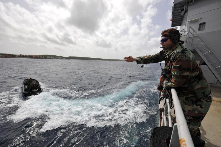 Keywords: US Navy 110628-N-YO394-077 A Royal Netherlands Marine directs Sailors assigned to Riverine Squadron (RIVRON) 3 during maneuvers near the Royal Neth.jpg en CURACAO Netherlands Antilles June 28 2011 A Royal Netherlands Marine directs Sailors assigned to Riverine Squadron RIVRON 3 during maneuvers near the Royal Netherlands Navy logistics support vessel HNLMS Pelikaan A804 RIVRON-3 is cross-training with elements of the Dutch marine corps and navy for a three-week training course intended to familiarize U S Navy Sailors with Dutch ship-to-shore amphibious operations U S Navy photo by Mass Communication Specialist 2nd Class Paul D Williams/Released 2011-06-28 110628-N-YO394-077 Navy http //www navy mil/view_image asp id 103405 U S Navy photo by Mass Communication Specialist 2nd Class Paul D Williams PD-USGov-Military-Navy Images from US Navy location Curacao Netherlands Antilles A804 Pelikaan ship 2006 Netherlands Marine Corps Riverine Squadron 3 |