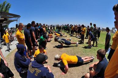 Keywords: US Navy 110629-N-GG400-201 Sailors compete in a pushup contest during the Captain's Cup event.jpg en SAN DIEGO June 29 2011 Sailors assigned to Amphibious Construction Battalion ACB 1 compete in a pushup contest during the Captain's Cup event ACB-1 is participating in a two-day challenge where Sailors compete for their respective companies to become Captain's Cup champions U S Navy photo by Seaman Jumar T Balacy/Released 2011-06-29 110629-N-GG400-201 Navy http //www navy mil/view_image asp id 104031 U S Navy photo by Seaman Jumar T Balacy PD-USGov-Military-Navy Images from US Navy location San Diego California |