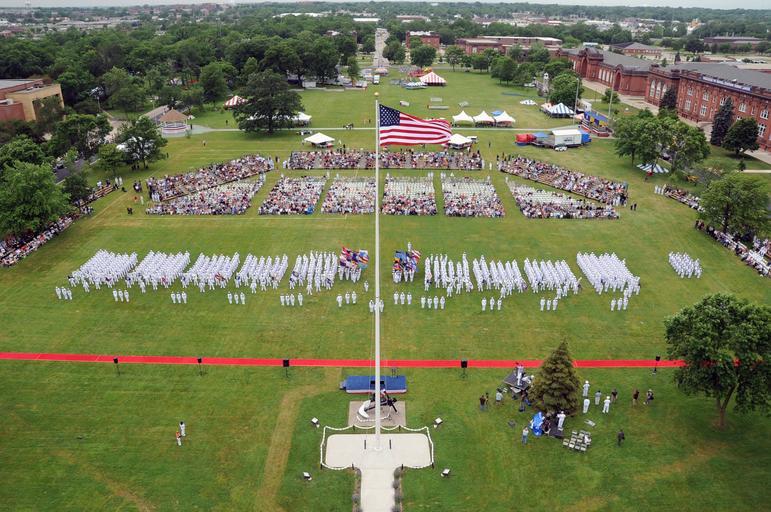 | Keywords: US Navy 110701-N-WQ300-401 Eleven divisions of 793 recruits at Recruit Training Command took part in a special pass-in-review graduation ceremony.jpg en NAVAL STATION GREAT LAKES Ill July 1 2011 Eleven divisions of 793 recruits at Recruit Training Command took part in a special pass-in-review graduation ceremony to commemorate the naval station's centennial in front of the historic clock tower headquarters building that was dedicated July 1 1911 It was the first outdoor graduation held on Ross Field since the 90th anniversary was celebrated on June 29 2001 The Hall of Fame Division is recognized as the top division in a training group U S Navy photo by Dwayne Rider/Released 2011-07-01 110701-N-WQ300-401 Navy http //www navy mil/view_image asp id 103738 U S Navy photo by Dwayne Rider PD-USGov-Military-Navy Ross Field Naval Station Great Lakes |
