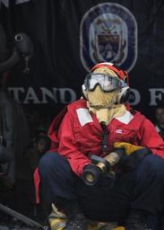 Keywords: US Navy 110711-N-YM590-004 Damage Controlman Fireman Alex Burgos stands by to fight a simulated fire on the flight deck of the guided-missile cruis.jpg en GULF OF ADEN July 11 2011 Damage Controlman Fireman Alex Burgos stands by to fight a simulated fire on the flight deck of the guided-missile cruiser USS Anzio CG 68 during a crash and salvage drill Anzio is assigned to Combined Task Force 151 a multinational mission-based task force established by the Combined Maritime Forces in January 2009 to conduct counter-piracy operations in the Red Sea Gulf of Aden Somali Basin and Arabian Sea U S Navy photo by Mass Communication Specialist 2nd Class Brian M Brooks/Released 2011-07-11 110711-N-YM590-004 Navy http //www navy mil/view_image asp id 104190 U S Navy photo by Mass Communication Specialist 2nd Class Brian M Brooks PD-USGov-Military-Navy USS Anzio CG-68 |