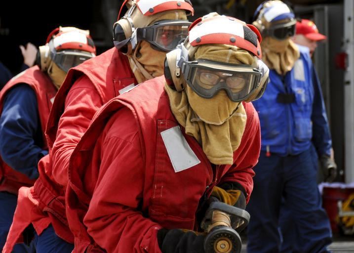 Keywords: US Navy 110711-N-YM590-008 Sailors approach a simulated fire on the flight deck of the guided-missile cruiser USS Anzio (CG 68) during a flight dec.jpg en GULF OF ADEN July 11 2011 Sailors approach a simulated fire on the flight deck of the guided-missile cruiser USS Anzio CG 68 during a flight deck crash and salvage drill Anzio is assigned to Combined Task Force 151 a multinational mission-based task force established by the Combined Maritime Forces in January 2009 to conduct counter-piracy operations in the Red Sea Gulf of Aden Somali Basin and Arabian Sea U S Navy photo by Mass Communication Specialist 2nd Class Brian M Brooks/Released 2011-07-11 110711-N-YM590-008 Navy http //www navy mil/view_image asp id 104191 U S Navy photo by Mass Communication Specialist 2nd Class Brian M Brooks PD-USGov-Military-Navy USS Anzio CG-68 |