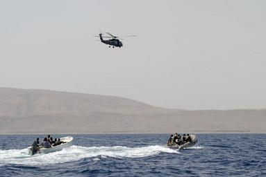 Keywords: US Navy 110813-N-TY225-097 A visit, board, search and seizure team from the guided-missile cruiser USS Anzio (CG 68) tows a skiff with seven Somali.jpg en GULF OF ADEN Aug 13 2011 A visit board search and seizure team from the guided-missile cruiser USS Anzio CG 68 tows a skiff with seven Somali mariners toward the shore The skiff was disabled for two days before Anzio came upon it and provided assistance Anzio is on a routine deployment to the U S 5th Fleet area of responsibility U S Navy photo by Mass Communication Specialist 2nd Class Bryan Weyers/Released 2011-08-13 110813-N-TY225-097 Navy http //www navy mil/view_image asp id 105865 U S Navy photo by Mass Communication Specialist 2nd Class Bryan Weyers PD-USGov-Military-Navy USS Anzio CG-68 Ships in distress |