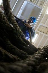 Keywords: US Navy 110906-N-ZC343-882 Airman Rhiannan Gaunt works as a line handler aboard the amphibious assault ship USS Bonhomme Richard (LHD 6).jpg en PACIFIC OCEAN Sept 6 2011 Airman Rhiannan Gaunt works as a line handler aboard the amphibious assault ship USS Bonhomme Richard LHD 6 during a replenishment at sea U S Navy photo by Senior Chief Mass Communication Specialist Joe Kane/Released 2011-09-06 110906-N-ZC343-882 Navy http //www navy mil/view_image asp id 106943 U S Navy photo by Senior Chief Mass Communication Specialist Joe Kane PD-USGov-Military-Navy Aboard USS Bonhomme Richard LHD-6 Photographs by Joseph Kane |