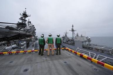 | Keywords: US Navy 110914-N-KS651-134 Marines assigned to the 11th Marine Expeditionary Unit (11th MEU) watch as the amphibious assault ship USS Makin Island.jpg en PACIFIC OCEAN Sept 14 2011 Marines assigned to the 11th Marine Expeditionary Unit 11th MEU watch as the amphibious assault ship USS Makin Island LHD 8 prepares to send fuel to the guided-missile cruiser USS Bunker Hill CG-52 during a replenishment at sea The Makin Island Amphibious Ready Group is conducting a composite training unit exercise COMPTUEX off the coast of Southern California U S Navy photo by Mass Communication Specialist 2nd Class Jason Behnke/Released 2011-09-14 110914-N-KS651-134 Navy http //www navy mil/view_image asp id 107350 U S Navy photo by Mass Communication Specialist 2nd Class Jason Behnke PD-USGov-Military-Navy Aboard USS Makin Island LHD-8 Aboard USS Bunker Hill CG-52 |