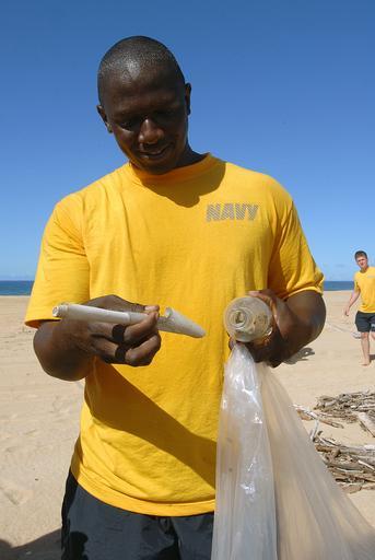 Keywords: US Navy 110915-N-YU572-080 Electrician's Mate 2nd Class Jon Moore removes a message from a bottle sent from Kagoshima, Japan more than five years a.jpg en BARKING SANDS Hawaii Sept 15 2011 Electrician's Mate 2nd Class Jon Moore removes a message from a bottle sent from Kagoshima Japan more than five years ago More than 40 Sailors and volunteers teamed up with 16 students and faculty of Ke Kula Ni`ihau O Kekaha School to collect trash along the shore at the Pacific Missile Range Facility The beach cleanup effort was in observance of International Coastal Cleanup Day sponsored by the Ocean Conservancy U S Navy photo by Mass Communication Specialist 1st Class Jay C Pugh/Released 2011-09-15 110915-N-YU572-080 Navy http //www navy mil/view_image asp id 107362 U S Navy photo by Mass Communication Specialist 1st Class Jay C Pugh PD-USGov-Military-Navy Images from US Navy location Barking Sands Hawaii Message in a bottle