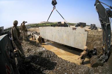 | Keywords: US Navy 110917-N-LL945-282 Seabees assigned to Naval Mobile Construction Battalion (NMCB) 4, Alfa and Delta Companies, place prefabricated concrete.jpg en MUSA QAL'EH Afghanistan Sept 17 2011 Seabees assigned to Naval Mobile Construction Battalion NMCB 4 Alfa and Delta Companies place prefabricated concrete pieces in the riverbed at the Musa Qal'eh low water crossing project NMCB-4 is a component of the Naval Expeditionary Combat Command that provides contingency engineering and construction across Afghanistan U S Navy photo by Mass Communication Specialist 1st Class Russ Stewart/Released 2011-09-17 110917-N-LL945-282 Navy http //www navy mil/view_image asp id 107924 U S Navy photo by Mass Communication Specialist 1st Class Russ Stewart PD-USGov-Military-Navy Images from US Navy location Musa Qala Afghanistan |