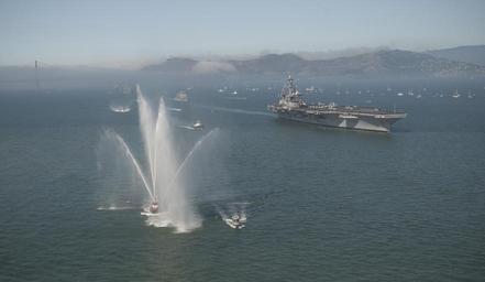 Keywords: US Navy 111008-N-TZ605-848 The Nimitz-class carrier USS Carl Vinson (CVN 70) leads a parade of ships during San Francisco Fleet Week 2011.jpg en SAN FRANCISCO Oct 8 2011 The Nimitz-class carrier USS Carl Vinson CVN 70 leads a parade of ships during San Francisco Fleet Week 2011 The five-day event which highlights the equipment technology and operational capabilities of the military's sea services and their history in the San Francisco area U S Navy photo by Mass Communication Specialist 3rd Class Timothy A Hazel/Released 2011-10-08 111008-N-TZ605-848 Navy http //www navy mil/view_image asp id 108504 U S Navy photo by Mass Communication Specialist 3rd Class Timothy A Hazel PD-USGov-Military-Navy Aboard USS Carl Vinson CVN-70 |