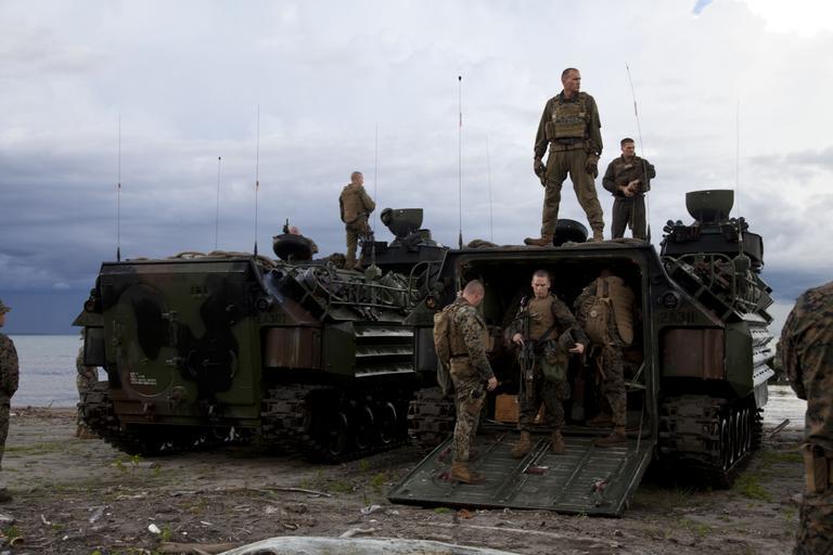 Keywords: US Navy 111010-A-ZZ999-018 Marines assigned to 2nd Assault Amphibian Battalion, Ground Combat Element, check their gear during a break in training.jpg en TURBO Colombia Oct 10 2011 Marines assigned to 2nd Assault Amphibian Battalion Ground Combat Element check their gear during a break in training Marines are participating in an Amphibious-Southern Partnership Station subject matter expert exchange mission The Marines are embarked aboard the amphibious dock landing ship USS Oak Hill LSD 51 which is participating in Southern Partnership Station an annual deployment of U S military training teams to the U S Southern Command area of responsibility in the Caribbean and Latin America U S Army photo by Spc Juancarlos Paz/Released 2011-10-10 111010-A-ZZ999-018 Navy http //www navy mil/view_image asp id 109063 U S Army photo by Spc Juancarlos Paz PD-USGov-Military-Navy USS Oak Hill LSD-51 2nd Assault Amphibian Battalion United States