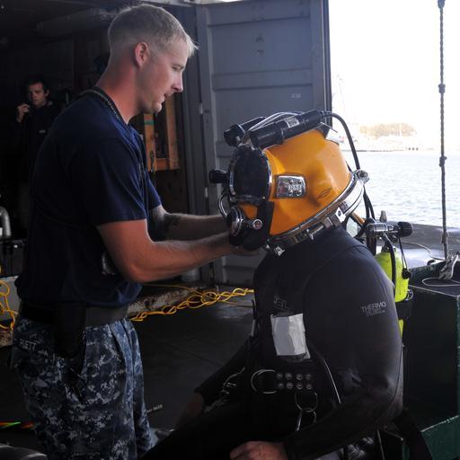 | Keywords: US Navy 111018-N-UD469-285 Navy Diver 1st Class Spencer Puett inspects the helmet of Navy Diver 1st Class Brody Kraft, assigned to Southwest Region.jpg en SAN DIEGO Oct 18 2011 Navy Diver 1st Class Spencer Puett inspects the helmet of Navy Diver 1st Class Brody Kraft assigned to Southwest Region Maintenance Center at Naval Air Station North Island after performing scheduled maintenance on the aircraft carrier USS Nimitz CVN 70 U S Navy photo by Aviation Machinist's Mate Airman Amanda Huntoon/Released 2011-10-18 111018-N-UD469-285 Navy http //www navy mil/view_image asp id 109223 U S Navy photo by Aviation Machinist's Mate Airman Amanda Huntoon PD-USGov-Military-Navy Aboard USS Nimitz CVN-68 United States Navy Divers |