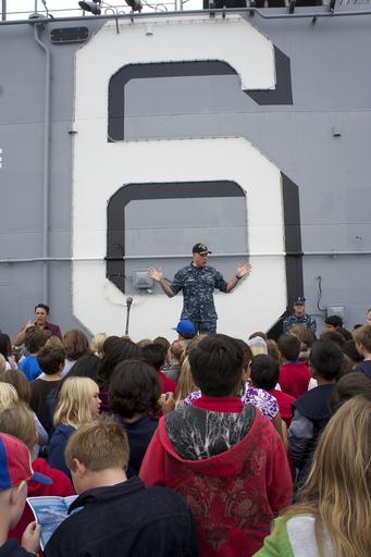 Keywords: US Navy 111021-N-ZC343-551 Capt. J. L. Harnden, commanding officer of the amphibious assault ship USS Bonhomme Richard (LHD 6), welcomes 5th grader.jpg en SAN DIEGO Oct 21 2011 Capt J L Harnden commanding officer of the amphibious assault ship USS Bonhomme Richard LHD 6 welcomes 5th graders aboard the ship from Gerald R Ford Elementary School in Indian Wells Calif Bonhomme Richard has maintained a partnership with the school for more than ten years U S Navy photo by Senior Chief Mass Communication Specialist Joe Kane/Released 2011-10-21 111021-N-ZC343-551 Navy http //www navy mil/view_image asp id 109328 U S Navy photo by Senior Chief Mass Communication Specialist Joe Kane PD-USGov-Military-Navy Aboard USS Bonhomme Richard LHD-6 6 number Photographs by Joseph Kane |