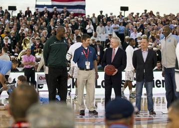 Keywords: US Navy 111111-N-AC887-005 Secretary of the Navy (SECNAV) the Honorable Ray Mabus stood center court with a wounded warrior, left, Earvin.jpg en SAN DEIGO Nov 11 2011 Secretary of the Navy SECNAV the Honorable Ray Mabus stood center court with a wounded warrior left Earvin Magic Johnson far left and James Worthy far right to start the first-ever Carrier Classic basketball game aboard the Nimitz-class aircraft carrier USS Carl Vinson CVN 70 The NCAA Division I top-ranked North Carolina Tar Heels defeated the Spartans from Michigan State University 67-55 U S Navy photo by Chief Mass Communication Specialist Sam Shavers/Released 2011-11-11 111111-N-AC887-005 Navy http //www navy mil/view_image asp id 110322 U S Navy photo by Chief Mass Communication Specialist Sam Shavers PD-USGov-Military-Navy Aboard USS Carl Vinson CVN-70 Carrier Classic Magic Johnson James Worthy Ray Mabus |