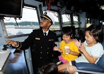 Keywords: US Navy 111112-N-WJ771-176 Ensign Roberto J. Johnson entertains Japanese children on the bridge of the forward-deployed amphibious dock landing shi.jpg en WHITE BEACH NAVAL FACILITY Okinawa Nov 12 2011 Ensign Roberto J Johnson entertains Japanese children on the bridge of the forward-deployed amphibious dock landing ship USS Germantown LSD 42 during a tour Germantown was open to the public Nov 12-13 as part of the White Beach Festival a two-day open-base event sponsored by Commander Fleet Activities Okinawa U S Navy photo by Mass Communication Specialist 2nd Class Casey H Kyhl/Released 2011-11-12 111112-N-WJ771-176 Navy http //www navy mil/view_image asp id 110399 U S Navy photo by Mass Communication Specialist 2nd Class Casey H Kyhl PD-USGov-Military-Navy Aboard USS Germantown LSD-42 |