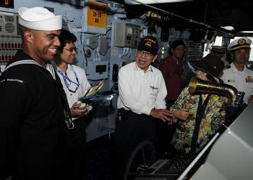 Keywords: US Navy 111112-N-WJ771-080 Seaman Christopher M. Edmonson describes navigational equipment to members of the Japan Maritime Self-Defense Force on t.jpg en WHITE BEACH NAVAL FACILITY Okinawa Nov 12 2011 Seaman Christopher M Edmonson describes navigational equipment to members of the Japan Maritime Self-Defense Force on the bridge of the forward-deployed amphibious dock landing ship USS Germantown LSD 42 during a tour Germantown was open to the public Nov 12-13 as part of the White Beach Festival a two-day open-base event sponsored by Commander Fleet Activities Okinawa U S Navy photo by Mass Communication Specialist 2nd Class Casey H Kyhl/Released 2011-11-12 111112-N-WJ771-080 Navy http //www navy mil/view_image asp id 110398 U S Navy photo by Mass Communication Specialist 2nd Class Casey H Kyhl PD-USGov-Military-Navy Aboard USS Germantown LSD-42 |
