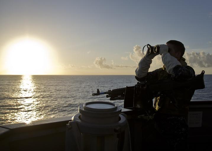 Keywords: US Navy 111114-N-RI884-003 A member of the starboard bridge wing small caliber action team stands watch aboard the guided-missile destroyer USS O'K.jpg en PACIFIC OCEAN Nov 14 2011 A member of the starboard bridge wing small caliber action team SCAT stands watch aboard the guided-missile destroyer USS O'Kane DDG 77 during training off the coast of Hawaii as part of the integrated maritime exercise Koa Kai O'Kane is participating in Koa Kai with the Japan Maritime Self-Defense Force JMSDF helicopter destroyer JS Kurama DDH 144 to prepare independent deployers in multiple warfare areas and provide training in a multi-ship environment U S Navy photograph by Mass Communication Specialist 2nd Class Daniel Barker/Released 2011-11-14 111114-N-RI884-003 Navy http //www navy mil/view_image asp id 110516 U S Navy photograph by Mass Communication Specialist 2nd Class Daniel Barker PD-USGov-Military-Navy USS O'Kane DDG-77 |