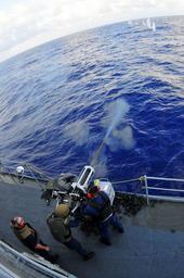 | Keywords: US Navy 111119-N-JH293-044 Gunner's Mate 2nd Class Michael Zimmerman fires a 25mm crew-served machine gun during a gunnery exercise aboard the subm.jpg en PHILIPPINE SEA Nov 19 2011 Gunner's Mate 2nd Class Michael Zimmerman fires a 25mm crew-served machine gun during a gunnery exercise aboard the submarine tender USS Emory S Land AS 39 Emory S Land homeported in Diego Garcia conducts maintenance and supports submarines and surface vessel in the U S 5th and U S 7th Fleet areas of responsibility U S Navy photo by Mass Communication Specialist 2nd Class Chris Williamson/Released 2011-11-19 111119-N-JH293-044 Navy http //www navy mil/view_image asp id 110745 U S Navy photo by Mass Communication Specialist 2nd Class Chris Williamson PD-USGov-Military-Navy USS Emory S Land AS-39 Mk 38 25mm chain gun |