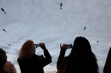 Keywords: US Navy 111210-N-QO773-022 Family members of Sailors take photos.jpg en NORFOLK Dec 10 2011 Family members of Sailors take photos of MH-60S Sea Hawks assigned to Helicopter Sea Combat Squadron HSC 9 as they fly in formation over Naval Station Norfolk during a homecoming ceremony for the squadron HSC-9 completed its first combat deployment embarked aboard the aircraft carrier USS George H W Bush CVN 77 in support of Operations Enduring Freedom and New Dawn U S Navy photo by Mass Communication Specialist 2nd Class Rex Nelson/Released 2011-12-10 111210-N-QO773-022 Navy http //www navy mil/view_image asp id 112038 U S Navy photo by Mass Communication Specialist 2nd Class Rex Nelson PD-USGov-Military-Navy Aboard USS George H W Bush CVN-77 People with cameras |