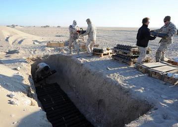 | Keywords: US Navy 111214-N-BA263-205 Explosive ordnance disposal technicians assigned to Commander, Task Group (CTG) 56.1 build a 1,500-pound munitions dispo.jpg en CAMP BUEHRING Kuwait Dec 14 2011 Explosive ordnance disposal technicians assigned to Commander Task Group CTG 56 1 build a 1 500-pound munitions disposal shot during demolition operations supervisor training CTG 56 1 provides mine countermeasure explosive ordnance disposal salvage diving counter-terrorism and force protection for the U S 5th Fleet area of responsibility U S Navy photo by Chief Mass Communication Specialist Kathryn Whittenberger/Released 2011-12-14 111214-N-BA263-205 Navy http //www navy mil/view_image asp id 112869 U S Navy photo by Chief Mass Communication Specialist Kathryn Whittenberger PD-USGov-Military-Navy Camp Buehring Mortar ammunition |