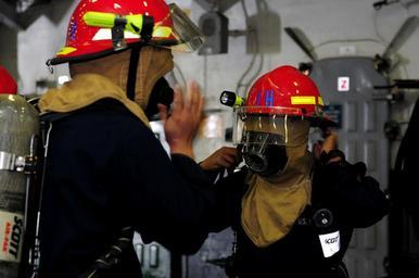Keywords: US Navy 120114-N-GF386-147 Sailors from the at-sea fire party help each other don damage control equipment during a fire drill aboard the amphibiou.jpg en ATLANTIC OCEAN Jan 13 2012 Sailors from the at-sea fire party help each other don damage control equipment during a fire drill aboard the amphibious assault ship USS Kearsarge LHD 3 Kearsarge is conducting crew certifications in preparation for future amphibious operations U S Navy photo by Mass Communication Specialist 3rd Class Jonathan Vargas/Released 2012-01-13 120114-N-GF386-147 Navy http //www navy mil/view_image asp id 113587 U S Navy photo by Mass Communication Specialist 3rd Class Jonathan Vargas PD-USGov-Military-Navy Aboard USS Kearsarge LHD-3 |
