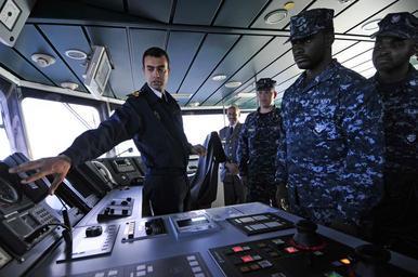 | Keywords: US Navy 120202-N-IZ292-154 Royal Moroccan Naval Ensign Nabil Elkorchi gives a briefing to Sailors from the guided-missile frigate USS Simpson (FFG.jpg en CASABLANCA Morocco Feb 2 2012 Royal Moroccan Naval Ensign Nabil Elkorchi gives a briefing to Sailors from the guided-missile frigate USS Simpson FFG 56 during a tour of the bridge on the Royal Moroccan Navy vessel Tarek Ben Zayid Simpson homeported in Mayport Fla is conducting theater security cooperation and maritime security operations in the U S Naval Forces Africa area of responsibility U S Navy photo by Mass Communication Specialist 2nd Class Felicito Rustique/Released 2012-02-02 120202-N-IZ292-154 Navy http //www navy mil/view_image asp id 114824 U S Navy photo by Mass Communication Specialist 2nd Class Felicito Rustique PD-USGov-Military-Navy Aboard USS Simpson FFG-56 |