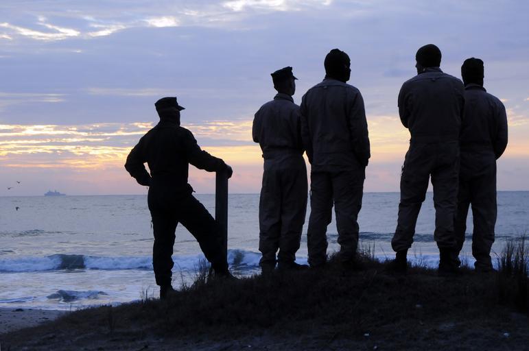 | Keywords: US Navy 120206-N-GZ228-045 Sailors assigned to Beach Master Unit (BMU) 2 watch the sunrise before the start of the amphibious assault phase of Bold.jpg en CAMP LEJEUNE N C Feb 6 2012 Sailors assigned to Beach Master Unit BMU 2 watch the sunrise before the start of the amphibious assault phase of Bold Alligator 2012 Bold Alligator is the largest naval amphibious exercise in the past 10 years and represents the Navy and Marine Corps' revitalization of the full range of amphibious operations The exercise focuses on today's fight with today's forces while showcasing the advantages of seabasing This exercise takes place Jan 30 through Feb 12 2012 afloat and ashore in and around Virginia and North Carolina U S Navy photo by Mass Communication Specialist Seaman Jesse Monford/Released 2012-02-06 120206-N-GZ228-045 Navy http //www navy mil/view_image asp id 115249 U S Navy photo by Mass Communication Specialist Seaman Jesse Monford PD-USGov-Military-Navy Marine Corps Base Camp Lejeune Bold Alligator 2012 |