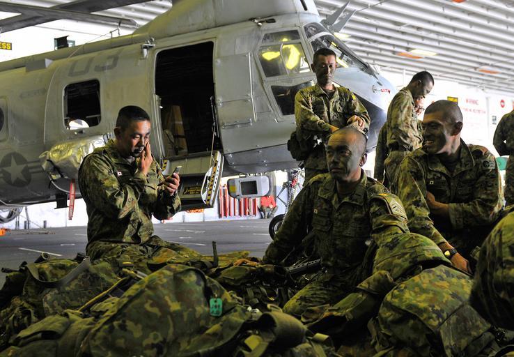 Keywords: US Navy 120210-N-KB563-036 Members of the Japan Ground Self-Defense Force put on camouflage face paint before conducting a beach landing exercise w.jpg en PACIFIC OCEAN Feb 10 2012 Members of the Japan Ground Self-Defense Force put on camouflage face paint before conducting a beach landing exercise with Marines from the 15th Marine Expeditionary Unit 15th MEU aboard the amphibious assault ship USS Peleliu LHA 5 during Exercise Iron Fist 2012 Iron Fist is a training exercise between U S Marines and the Japan Ground Self-Defense Force designed to increase interoperability and amphibious capabilities throughout the U S 3rd and 7th Fleet areas of responsibility U S Navy photo by Mass Communication Specialist 2nd Class Michael Russell/Released 2012-02-10 120210-N-KB563-036 Navy http //www navy mil/view_image asp id 115538 U S Navy photo by Mass Communication Specialist 2nd Class Michael Russell PD-USGov-Military-Navy Aboard USS Peleliu LHA-5 People of the JGSDF |