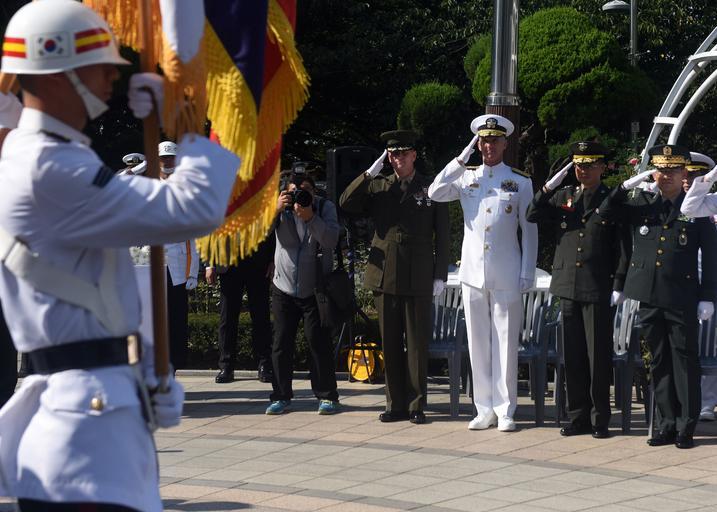 Keywords: US Navy 150915-N-AD372-021.jpg en INCHEON Republic of Korea Sept 15 2015 Rear Adm William Byrne commander of U S Naval Forces Korea and other U S and Republic of Korea military leaders render a salute at the Gen Douglas MacArthur memorial statue in Iduring a ceremony paying tribute to the sacrifices service members made in the Korean War The ceremony was the first event of the 65th Annual Incheon Amphibious Landing Operation Commemoration Ceremony 2015-09-15 09 44 14 150915-N-AD372-021 Navy http //www cpf navy mil/news aspx/010450 U S Navy Photo by Mass Communication Specialist 1st Class Abraham Essenmacher/Released other versions Custom license marker 2015 09 29 PD-USGov-Military-Navy Uploaded with UploadWizard Images from US Navy location INCHEON Republic of Korea Incheon Jayu Park William D Byrne Jr Generals of the Republic of Korea Army Generals of the Republic of Korea Marine Corps Military police of South Korea |