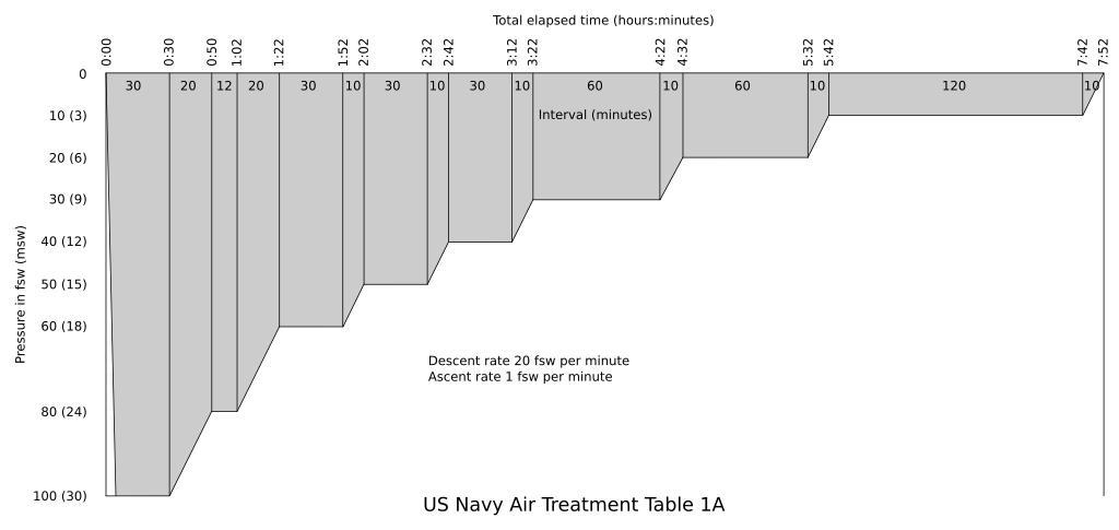Keywords: US Navy Air Treatment Table 1A.svg en Graphic representation of US Navy Air Treatment Table 1A 2015-11-12 own Pbsouthwood other versions cc-zero Decompression tables Uploaded with UploadWizard
