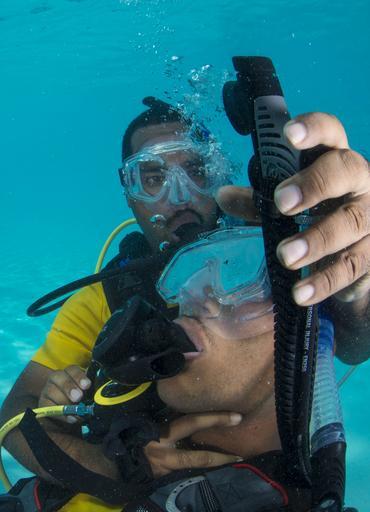 Keywords: US Navy divers and Belizean Coast Guard divers practice SCUBA emergency procedures in a pool 140624-N-IP743-311.jpg en Belize Coast Guard divers practice emergency procedures during a Southern Partnership Station 2014 training dive The Belizean divers are working together with their American counterparts from Mobile Diving and Salvage Unit TWO as part of Southern Partnership Station 2014 Southern Partnership Station 2014 is a U S Navy deployment focused on subject matter expert exchanges with partner nation militaries and security forces in Central and South America and the Caribbean U S military teams work with partner nation forces during naval-focused training exercises military-to-military engagements and community relations projects in an effort to enhance partnerships with regional maritime activities and improve the operational readiness of participants U S Navy photo by Mass Communication Specialist 1st Class Brett Cote/Released 2014-06-24 Petty Officer 1st Class Brett Cote https //www dvidshub net/image/1420084 140624-N-IP743-311 2014-06-25 21 22 BELIZE CITY BZ 3 PD-USGov-Military-Navy United States Navy Mobile Diving and Salvage Unit Two Southern Partnership Station 2014 Images from DoD uploaded by Fæ |