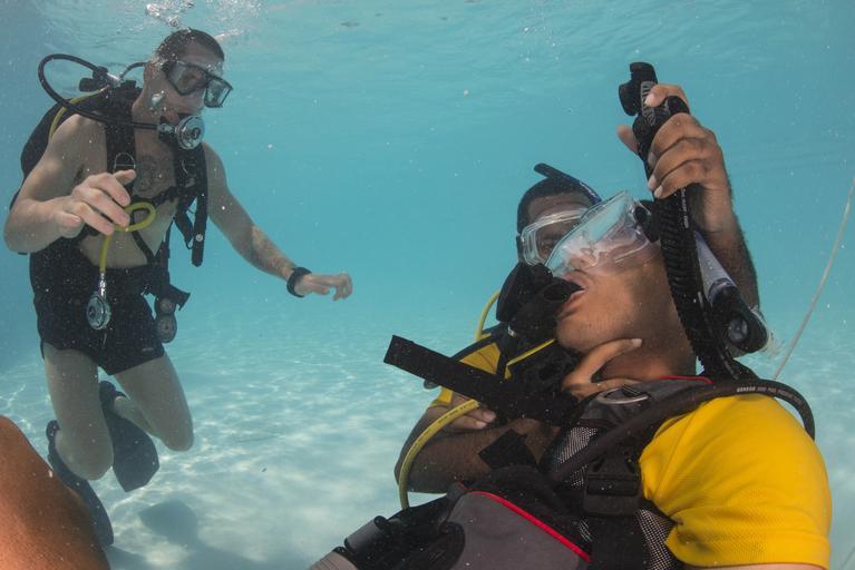 Keywords: US Navy divers and Belizean Coast Guard divers practice SCUBA emergency procedures in a pool 140624-N-IP743-312.jpg en Navy Diver 2nd Class Bob LeFrance from Mobile Diving and Salvage Unit Two MDSU 2 Company 2-1 watches as Belize Coast Guard divers practice emergency procedures during a Southern Partnership Station 2014 training dive The MDSU 2 divers are working together with their Belizean Coast Guard counterparts as part of Southern Partnership Station 2014 Southern Partnership Station 2014 is a U S Navy deployment focused on subject matter expert exchanges with partner nation militaries and security forces in Central and South America and the Caribbean U S military teams work with partner nation forces during naval-focused training exercises military-to-military engagements and community relations projects in an effort to enhance partnerships with regional maritime activities and improve the operational readiness of participants U S Navy photo by Mass Communication Specialist 1st Class Brett Cote/Released 2014-06-24 Petty Officer 1st Class Brett Cote https //www dvidshub net/image/1420090 140624-N-IP743-312 2014-06-25 21 22 BELIZE CITY BZ 3 PD-USGov-Military-Navy United States Navy Mobile Diving and Salvage Unit Two Southern Partnership Station 2014 Images from DoD uploaded by Fæ |