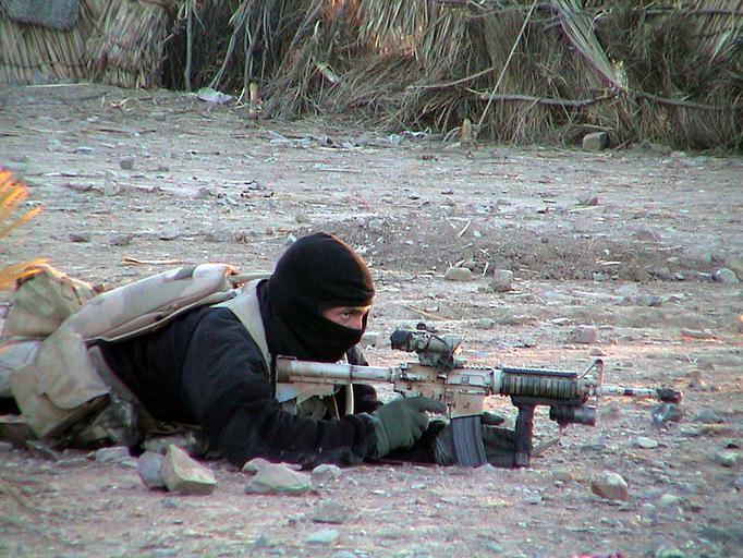 | Keywords: US Navy SEAL team member in Afghanistan 2002.jpg en In January 2002 a member of a U S Navy SEAL team provides cover for his teammates while advancing on a suspected location of al-Qaeda and Taliban forces in eastern Afghanistan 2002-01-24 United States Navy United States Navy PD-USGov-Military-Navy January 2002 photographs 24 January Advanced Combat Optical Gunsight on M4 carbine Balaclavas CamelBak Desert Camouflage Uniform in 2002 January 2002 in Afghanistan Military people in 2002 Prone M4 carbine with foregrip Male soldiers Males in masks Males with M4 carbine United States Navy SEALs United States Special Operations Forces in the War in Afghanistan 2001-present |