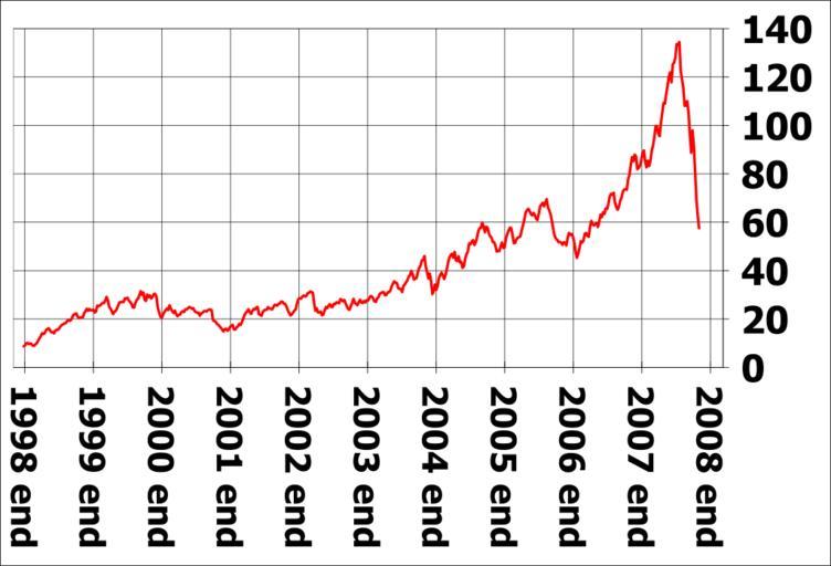 Keywords: US oil price in dollars from 1999 to 2008-10-31.svg en United States oil price from 1999 to 2008 October 31; weekly prices in United States dollars per barrel on the vertical scale with year markers on the horizontal scale I 84user created this work using the excel file pet_pri_wco_k_w xls from the U S Energy Information Administration's web page http //tonto eia doe gov/dnav/pet/pet_pri_wco_k_w htm direct link http //tonto eia doe gov/dnav/pet/xls/pet_pri_wco_k_w xls and using Open Source Gnumeric 1 9 1 to produce the chart 2008-11-11 84user talk None See Licensing below See also thumb left US oil price in dollars from 1999 to 2008-10-17 thumb center oil world price from 1998 to 2008 November thumb left world oil price in dollars from 1978 to 2008-10-17 log scale thumb center oil world price from 1998 to 2008 October clr Economic charts of the United States Oil prices Finance SVG economics |